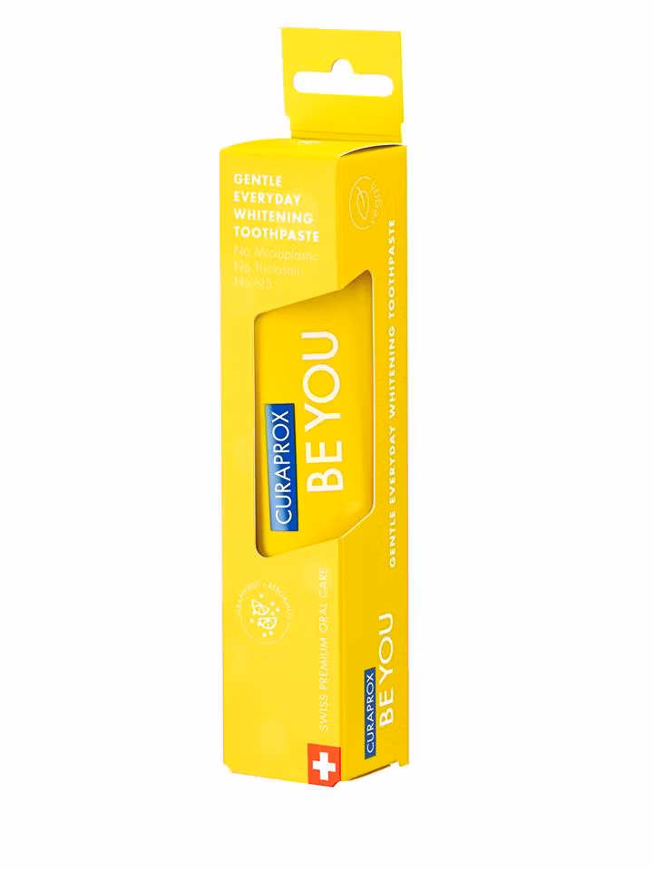 Curaprox Be You një pastë dhëmbësh me grejpfrut dhe qitro, të kombinuar me nenexhik dhe mentol. Falë Enzimave, Hidroksiapatitit dhe Bimëve mbron nga kariesi, ju jep një frymëmarrdhje të freskët, ndihmon kundër ndjeshmërisë, nuk provokon aknet, minimizon pllakat dhe kujdeset për mishrat e dhëmbëve. Efekt zbardhues me Oksidazën e Glukozës. Mbrojtje nga kariesi nga fluori dhe ksilitoli. Mentol jep freski të qëndrueshme dhe Silica bën një pastrim të butë. Kompleksi Bioflavonoid i agrumeve. Provitamin B5 (panthenol).Pa SLS.