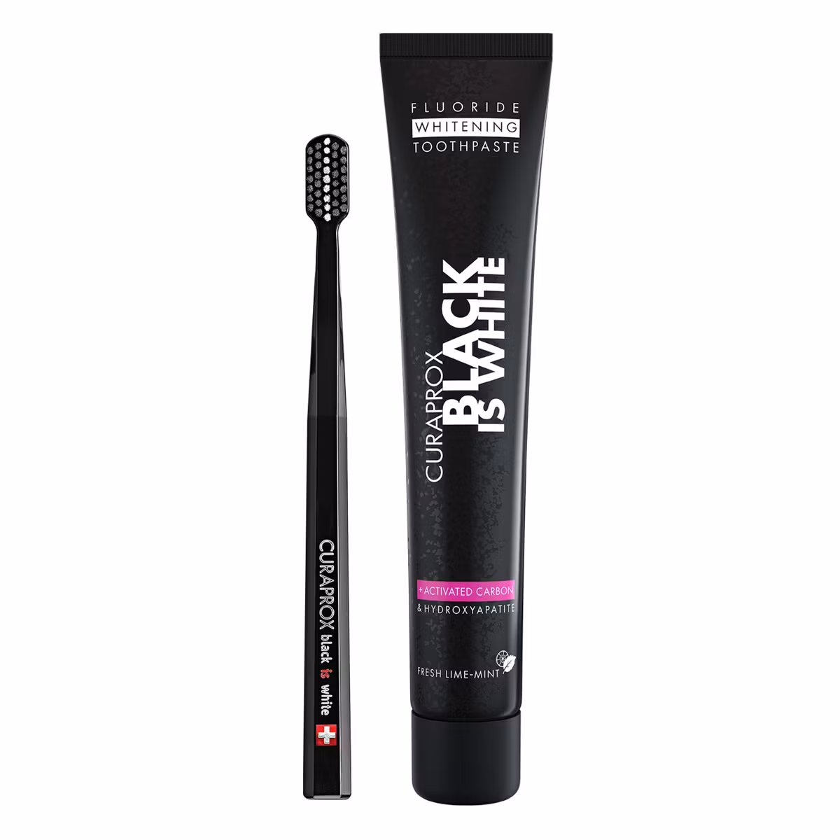 Pasta është me përmbajtje karboni aktiv me veprim zbardhues dhe mbrojtës të dhëmbit. Karboni aktiv ndihmon në rimineralizimin e dhëmbit, reduktimin e zverdhjes dhe jep ndjesi freskie. Furça Curaprox me fije të buta depërton lehtësisht në hapësirat midis dhëmbëve dhe nuk i dëmton mishrat e dhëmbëve.