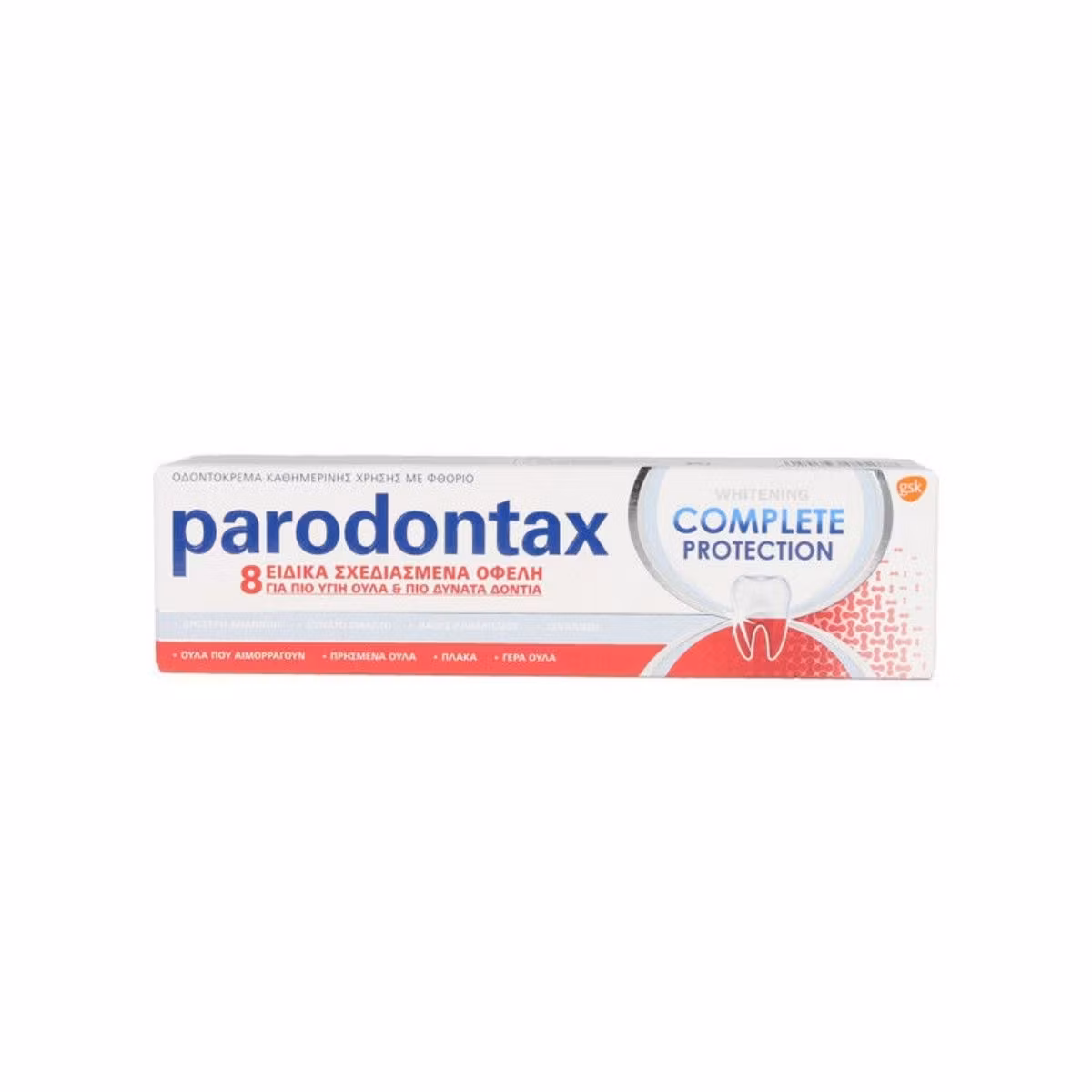 Pasta e dhëmbëve Parodontax është krijuar posaçërisht për të ndihmuar në reduktimin dhe parandalimin e gjakderdhjes së mishrave të dhëmbëve. Parodontax Complete Protection Whitening ka 8 përfitime të zhvilluara posaçërisht që ndihmojnë në mbajtjen e mishrave të dhëmbëve të shëndetshëm dhe dhëmbët tuaj të fortë.
