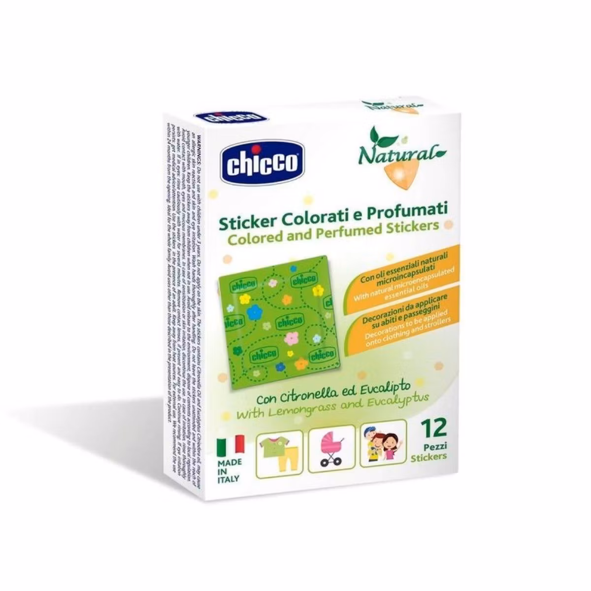 Ngjitëse me parfum Chicco është ideale për të aromatizuar ambientet që ndodheni së bashku me fëmijët tuaj. Formula përbëhet nga kombinimi i përbërësve me origjinë natyrore si: limoni dhe eukalipti. Aromat aktivizohen gjatë fërkimit të ngjitësit duke lëshuar gradualisht parfumin. Aplikoni në rroba ose karroca. Është e përshtatshme për përdorim nga e gjithë familja.