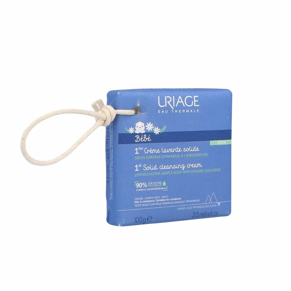 Uriage Bebe 1st Solid Cleansing Cream është një sapun i ngurtë, i cili pastron butësisht lëkurën delikate të foshnjës pa e tharë apo irrituar atë. Formula e tij përfshin kompleksin Ujë Termal Uriage dhe Edelweiss Organike që sjell qetësim të menjëhershëm. I pasur me gjalp shea dhe vaj luledielli të cilët hidratojnë në mënyrë intensive lëkurën dhe forcojnë filmin hidro-lipidik të shtresës së jashtme. Nuk përmban vaj palme. I testuar nën kontrollin dermatologjik dhe pediatrik . I përshtatshëm për fytyrë dhe trup.
