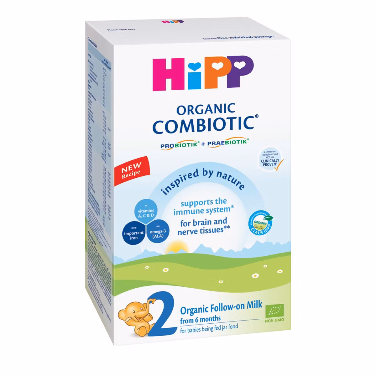 Hipp Organic Combiotic 2 është qumësht formulë i pasur me vitamina, minerale dhe acide yndyrore të domosdoshme për zhvillimin e shëndetshëm të foshnjave. Përmban Probiotik të shtuar që janë të rëndësishëm për mikrobiomën e zorrëve të fëmijeve tuaj. Është i formuluar duke përdorur vetëm përbërës organik. Përdoret për foshnja që nuk ushqehen me gji ose për të plotësuar ushqyerjen me gji. Është burim i Kalçiumit, Fosforit dhe i vitaminës D, të cilat luajnë rol të rëndësishëm në zhvillimin e shëndetshëm të kockave. Rekomandohet të konsumohet nga foshnjat mbi 6 muaj.