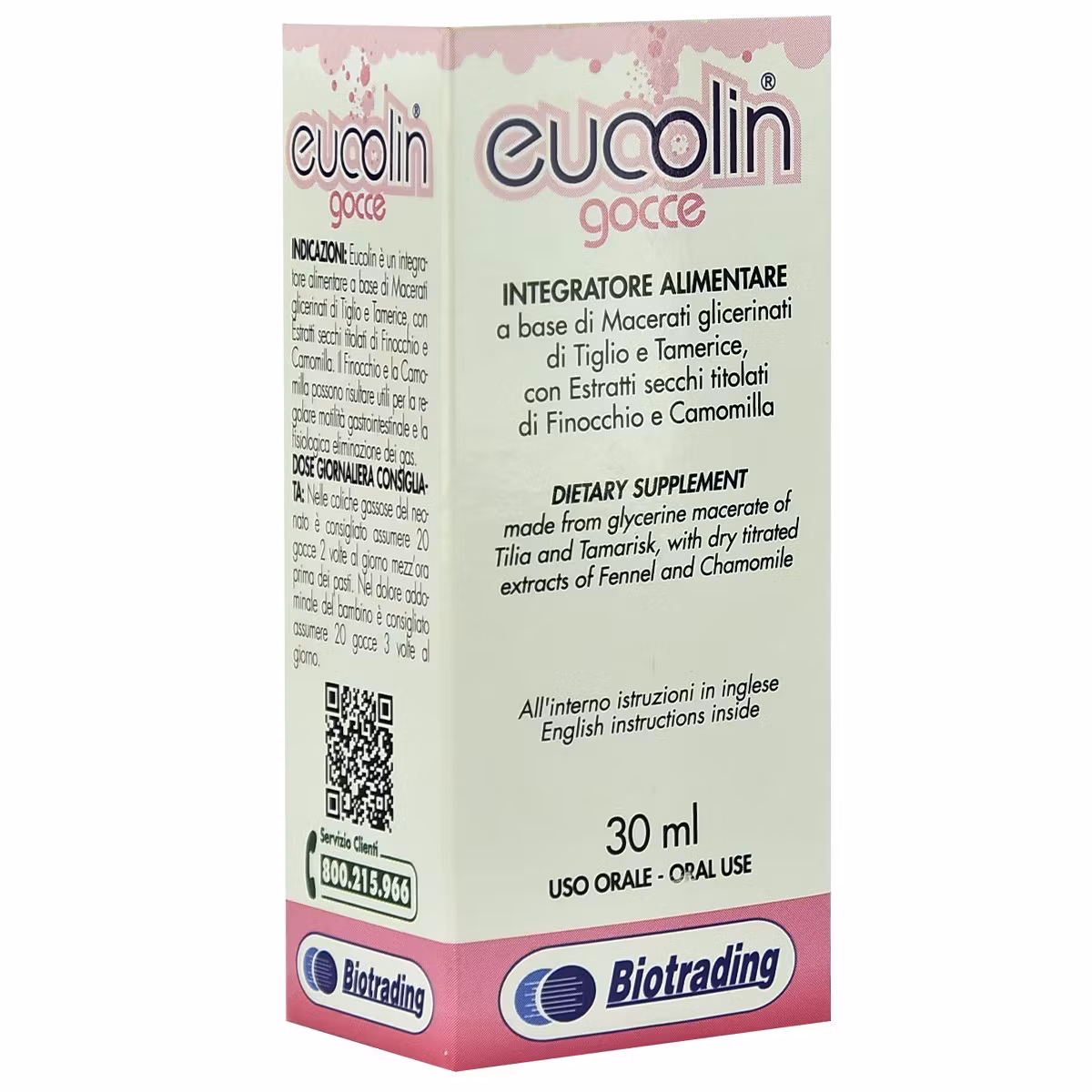Eucolin me pika është një suplement ushqimor me bazë ekstraktesh bimore të Finokut, Kamomilit, Blirit dhe Tamarisit që përdoret për lëvizshmërinë e rregullt të zorrëve dhe eliminimin e gazrave. Bliri ka veti anti spazmodike në muskujt e lëmuar të zorrëve dhe i mbron nga kontakti me irrituesit. Finoku relakson muskujt e zorrëve dhe pakëson spazmat e dhimbshme. Tamarisi redukton fryrjen e stomakut dhe rrit lëvizhsmërinë e zorrëve. Kamomili ka veti anti-inflamatore dhe mbron stomakut.