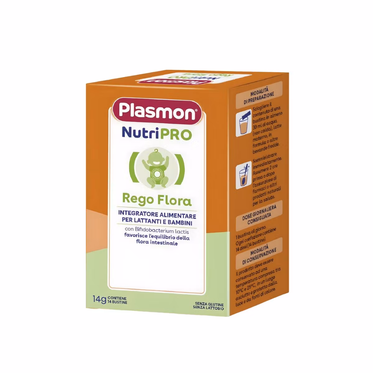 Plasmon Nutripro Rego Flora bustinat ofrojnë probiotikë thelbësorë për të promovuar një tretje të shëndetshme te foshnjat. Të projektuara për të balancuar bakteret e zorrëve, këto bustina ndihmojnë në reduktimin e shqetësimeve si fryrja dhe gazrat, duke siguruar që foshnjat të ndihen rehat dhe të shëndetshëm. Thjesht përziejeni me formulën e foshnjës ose ushqimin për administrim të lehtë.