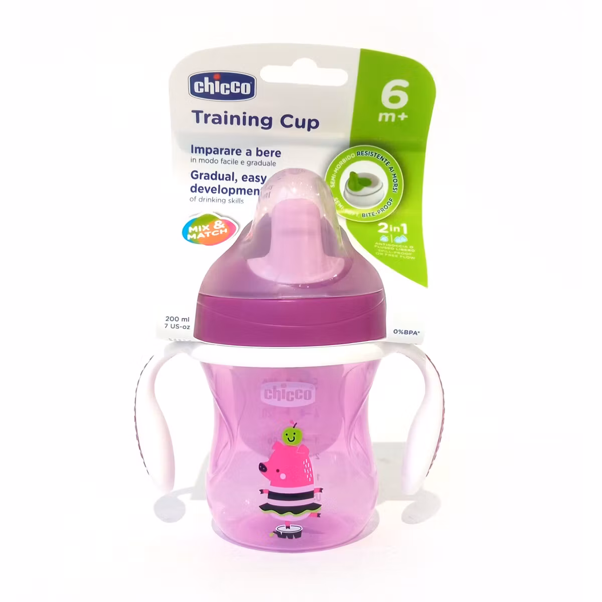 Gotë rozë e dizajnuar për foshnjat mbi 6 muaj. Ndihmon në kalimin nga biberoni në gotë, me doreza të lehta për t'u mbajtur dhe një grykë të butë për të ofruar një eksperiencë komode. Është rezistente ndaj derdhjes, duke siguruar më pak rrëmujë dhe më shumë pavarësi për foshnjën tuaj.