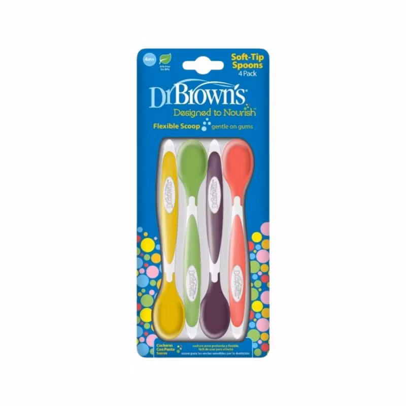 Lugët me majë të butë të Dr. Brown’s janë të dizajnuara për të ofruar një përvojë ushqyerjeje të sigurt dhe të rehatshme për foshnjat mbi 4 muaj. Majat e buta dhe fleksibile janë të buta për mishrat e ndjeshëm të foshnjës, duke e bërë ushqyerjen më të lehtë dhe më të këndshme. Doreza e gjatë ndihmon në arritjen e çdo pjesë të ushqimit në kavanoz, ndërsa forma e cekët e lugës lehtëson ushqyerjen për gojën e vogël të foshnjës. Baza e gjerë e lugës siguron që ajo të qëndrojë në mënyrë të qëndrueshme në tavolinë, duke shmangur rrëzimet dhe ndotjen. Seti përfshin katër lugë në ngjyra të ndryshme të gjalla. Të sigurta për larje në pjatalarëse dhe për sterilizim. Pa BPA.