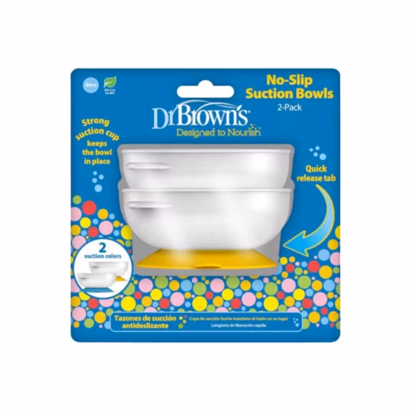 Tasat antirrëshqitës Dr. Brown’s janë projektuar për të ndihmuar foshnjat në zhvillimin e aftësive të ushqyerjes së pavarur, duke mbajtur tasin të qëndrueshëm gjatë vakteve. Baza me thithje të fortë siguron që tasi të qëndrojë në vend, duke parandaluar rrëshqitjen ose përmbysjen. Anët e larta dhe të rrumbullakëta lehtësojnë marrjen e ushqimit me lugë, ndërsa materiali pa BPA është i sigurt për përdorim nga foshnjat mbi 4 muajsh. Tasat janë të përshtatshme për përdorim në mikrovalë dhe larje në makinë larëse enësh (në raftin e sipërm).
