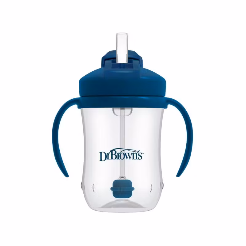Gotë me pipë e parë për foshnje Dr. Brown’s është projektuar për të ndihmuar bebet në kalimin nga biberoni në gotë. Me një pipë të butë dhe të rënduar, ajo lejon foshnjën të pijë nga çdo kënd, duke e bërë më të lehtë kalimin nga pirja me përmbysje në pirjen në mënyrë të drejtë. Dorezat anësore janë të lehta për t'u kapur nga duart e vogla dhe janë të heqshme për t'u përshtatur me zhvillimin e aftësive të foshnjës. Kapaku i përshtatshëm për udhëtime rrëshqet për t'u hapur kur foshnja pi dhe mbyllet për të mbajtur pipën të pastër kur nuk është në përdorim – plus, është rezistent ndaj derdhjeve! Të gjitha pjesët janë të heqshme për pastrim të lehtë. E sigurt për larje në makinë larëse enësh (rafti i sipërm) dhe sterilizim. Përfshin furçë për pastrimin e pipës. Kapaciteti: 270 ml. Pa BPA. Për foshnje mbi 6 muaj.