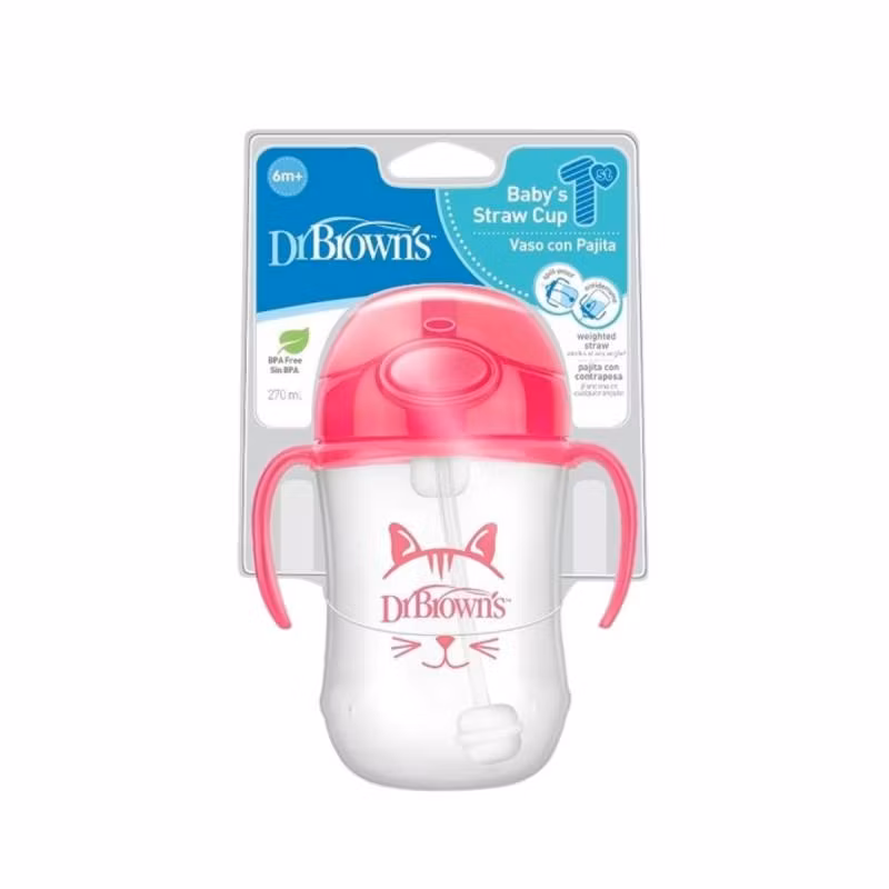 Gotë me pipë e parë për foshnje Dr. Brown’s është projektuar për të ndihmuar bebet në kalimin nga biberoni në gotë. Me një pipë të butë dhe të rënduar, ajo lejon foshnjën të pijë nga çdo kënd, duke e bërë më të lehtë kalimin nga pirja me përmbysje në pirjen në mënyrë të drejtë. Dorezat anësore janë të lehta për t'u kapur nga duart e vogla dhe janë të heqshme për t'u përshtatur me zhvillimin e aftësive të foshnjës. Kapaku i përshtatshëm për udhëtime rrëshqet për t'u hapur kur foshnja pi dhe mbyllet për të mbajtur pipën të pastër kur nuk është në përdorim – plus, është rezistent ndaj derdhjeve! Të gjitha pjesët janë të heqshme për pastrim të lehtë. E sigurt për larje në makinë larëse enësh (rafti i sipërm) dhe sterilizim. Përfshin furçë për pastrimin e pipës. Kapaciteti: 270 ml. Pa BPA. Për foshnje mbi 6 muaj.