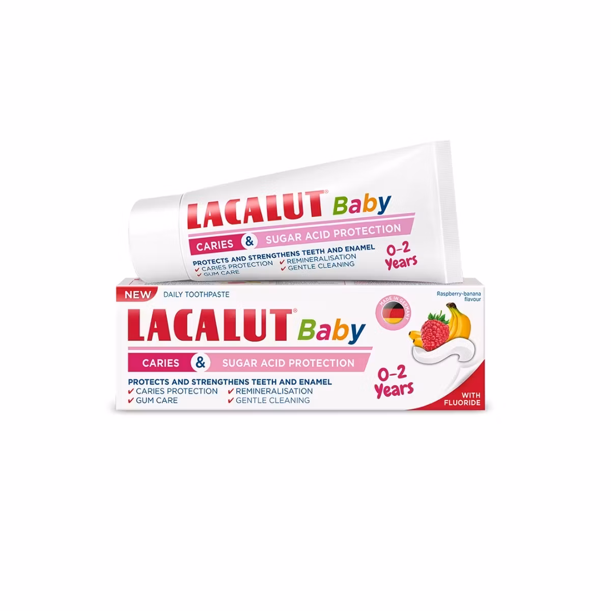 Lacalut baby është një pastë dhëmbësh e krijuar posaçërisht për fëmijët në mënyrë që të mbrojë ato kundër kariesit. Formula e pasur me florur amine si përbërës kryesor krijon një shtresë mbrojtëse duke parandaluar kështu prishjen e dhëmbëve. Eshtë ideale për higjienën e përditshme orale të fëmijëve nga 0-2 vjeç. Pasta ka shije banana dhe mjedre duke e berë të pëlqyeshme për t`u pranuar nga vetë fëmijët.