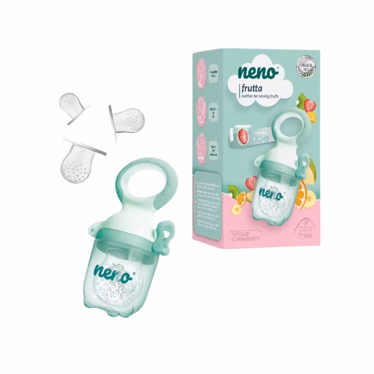 Mbajtëse frutash të ngrira ftohëse për dhëmbët e bebit e cila ndihmon në procesin e daljes së dhëmbëve e njëkohësisht ndihmon fëmijën të mësojë të gëlltitet pa rrezikun e mbytjes.
