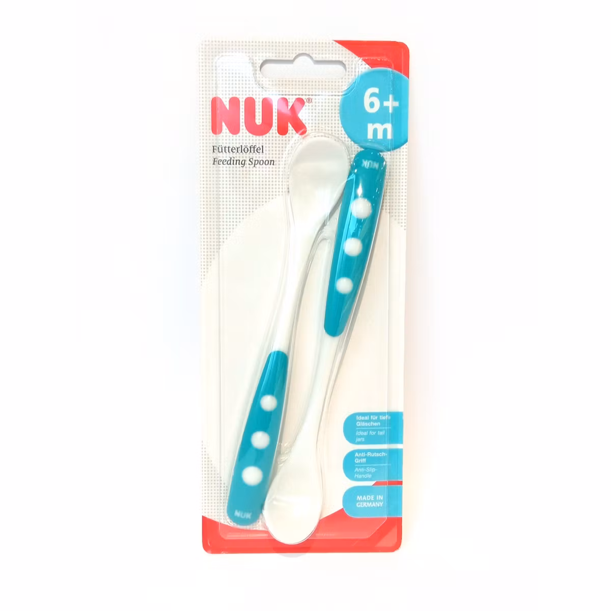 Seti me 2 lugë ushqyerje NUK Easy Learning Feeding Spoon është një set me 2 lugë silikoni të dizenjuara për përdorim me kavanozë dhe pjata për fëmijë të moshës nga 6 muaj e në vazhdim. Bishti i gjatë e bën lugën të lehtë për të arrirë në thellësi të kavanozit me ushqim për bebe. Mund të lahet lehtësisht në lavapjatë.