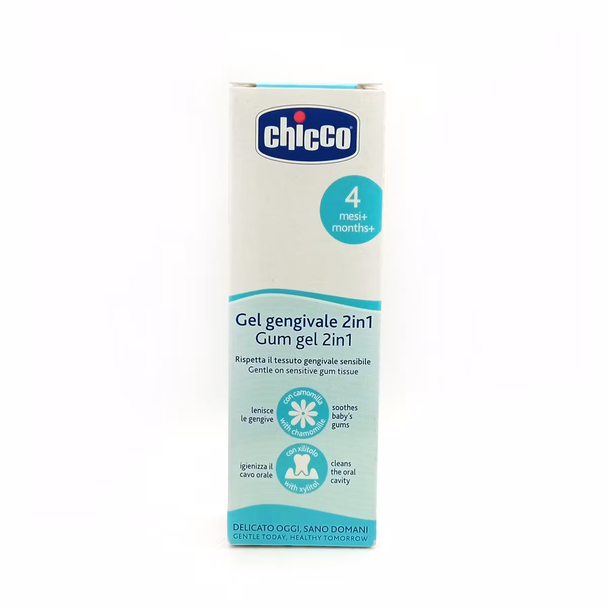 Xhel me efekt të dyfishtë: për qetësimin e mishrave të dhëmbëve dhe parandalimin e shfaqjes së baktereve në gojë. I përshtatshëm për foshnjat mbi 4 muaj e në vazhdim. Përmban kamomil që qetëson dhe jep lehtësim të shpejtë gjatë fazës delikate të daljes së dhëmbëve dhe xilitol që dezinfekton hapësirën e gojës falë veprimit antibakterial.