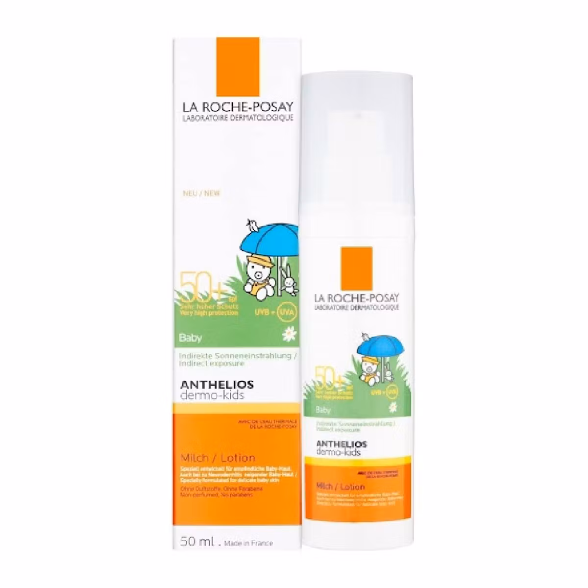 Qumështi në trajtën e një kremi me mbrojtje të lartë i dizajnuar për lëkurën delikate të foshnjave. Kjo shishe 50 ml përmban një formulë të pasur me përbërës qetësues dhe mbrojtës si gjalpi shea dhe uji termal pranveror. Ofron mbrojtje të gjerë ndaj rrezeve UVA/UVB dhe është rezistent ndaj ujit. Formula e butë, hipoalergjike është pa parabene, pa aromë dhe është e përshtatshme për përdorim të përditshëm.