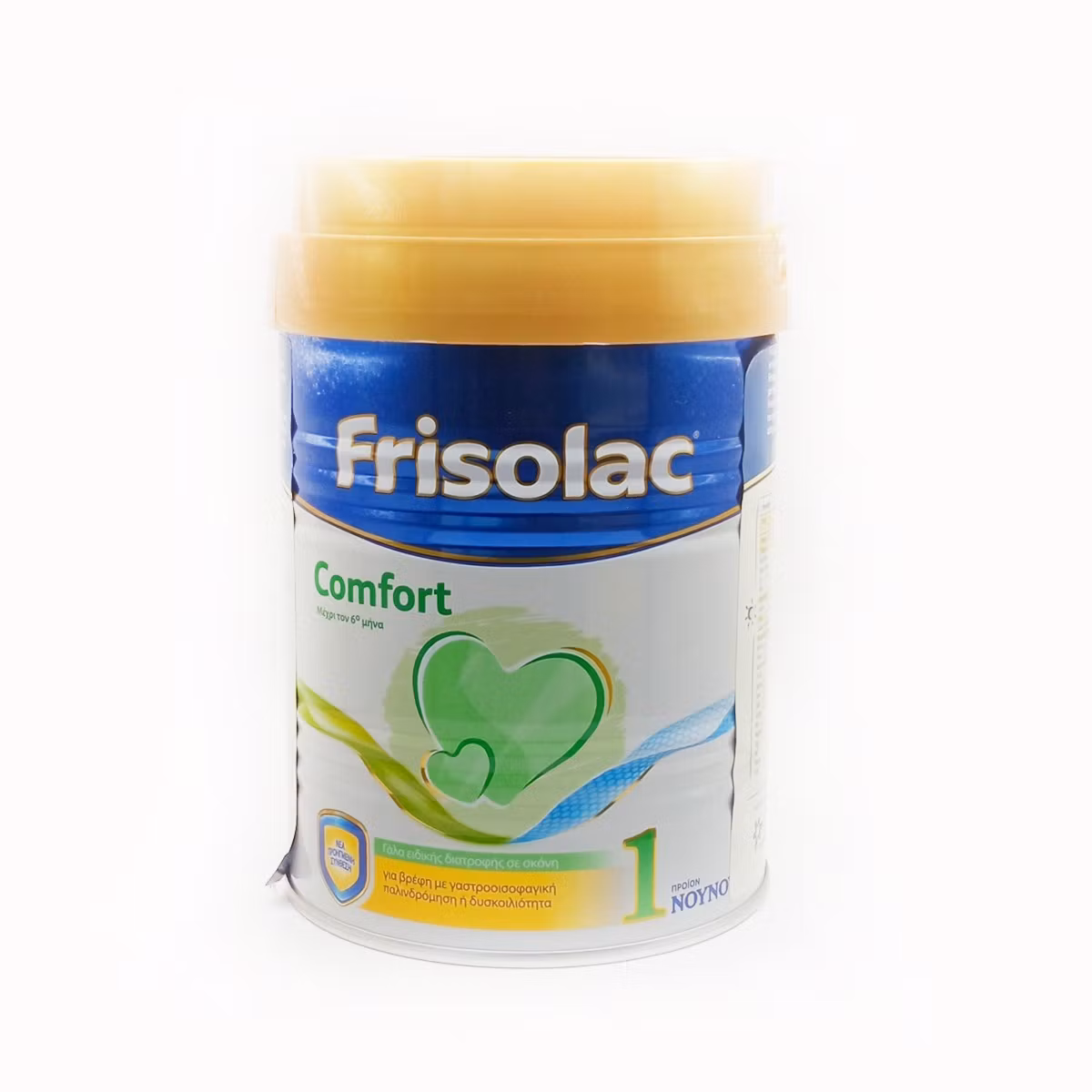 Frisolac Comfort 1 është qumësht formulë i përshtatshëm për foshnjat me probleme të refluksit ose probleme të tretjes. Formulë e re e avancuar, përmban nukleotide dhe ekstrakte të farës se akacies së bardhë të cilat përmirësojnë tretjen. Përvec kësaj përmban vitamina, minerale dhe acide yndyrore për zhvillimin e shëndetshëm të foshnjave dhe ndihmon për të mbuluar nevojat e tyre të veçanta ushqimore. Është burim i kalçiumit, fosforit dhe i vitaminës D, të cilat luajnë rol të rëndësishëm në zhvillimin e shëndetshëm të kockave. Formula e pasur me hekur ndihmon në proçesin e formimit të rruzave të kuqe të gjakut tek fëmija juaj. Rekomandohet te përdoret për foshnjat nga lindja deri 6 muaj.