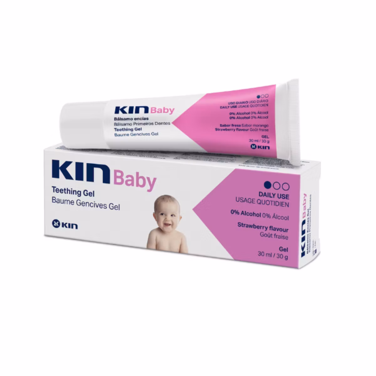 Kin Baby është një xhel për gojën që përdoret përpara daljes së dhëmbëve te bebet. Përmban kamomil, ekstrakt sherebele dhe provitamin B5. Me një shije luleshtrydhe ky produkt kujdeset dhe mbron mishrat e dhëmbëve të bebes dhe ofron rehati gjatë daljes së dhëmbëve.