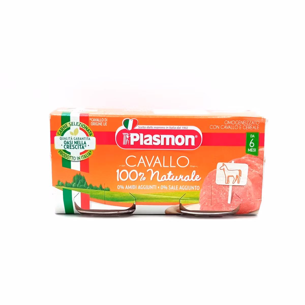 Plasmon Cavallo Naturalle është përftuar nga kombinimi i mishit të homogjenizuar dhe drithërave. Ideal për tu konsumuar nga fëmijët mbi 6 muaj e në vazhdim. Produktet e mishit të homogjenizuar të Plasmon janë krijuar për t'i siguruar fëmijës proteina me vlerë të lartë biologjike që vijnë ekskluzivisht nga mishi. Nuk përmban gluten, laktozë apo sheqer të shtuar. I pajisur me çertifikimin Demeter.