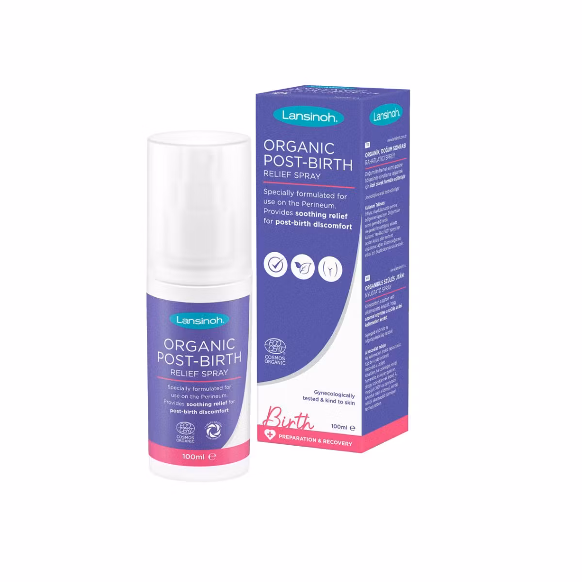 Spray Organik Lansinoh është një spraj i përshtatshëm për të ofruar lehtësim dhe qetësim pas lindjes ne zonën intime. Ka në përmbatje kombinimin e Aloe Vera, Kamomil dhe kastravec të cilët ofrojnë ndjesi qetësimi dhe freskie në zonën intime. Është I testuar dermatologjikisht dhe gjinekologjikisht. Spërkatësi 360° e bën të lehtë aplikimin e produktit.