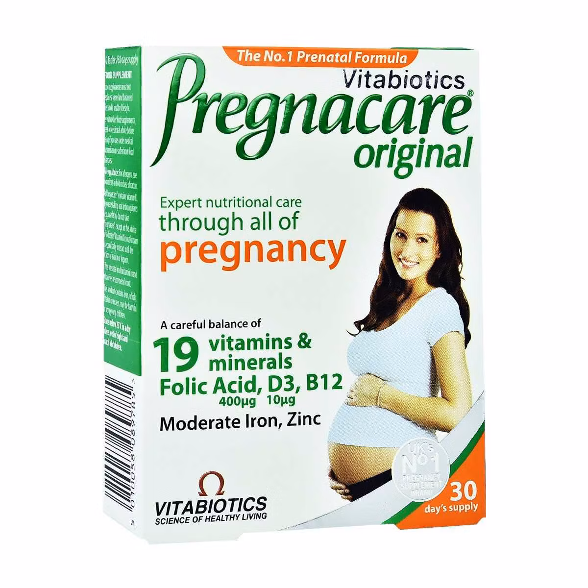 Pregnacare Original është një suplement ushqimor i pasur me vitamina dhe minerale që përdoret gjatë gjithë shtatzënisë. Acidi folik kontribuon në rritjen e indeve të nënës gjatë shtatzënisë dhe Zinku ndihmon në fertilitetin normal dhe riprodhimin. Hekuri, Magnezi dhe Niacina kontribuojnë në reduktimin e lodhjes dhe mungesës së fuqisë. Vitaminat B janë të rëndësishme për formimin e rruazave të kuqe të gjakut dhe çlirimin e energjisë.