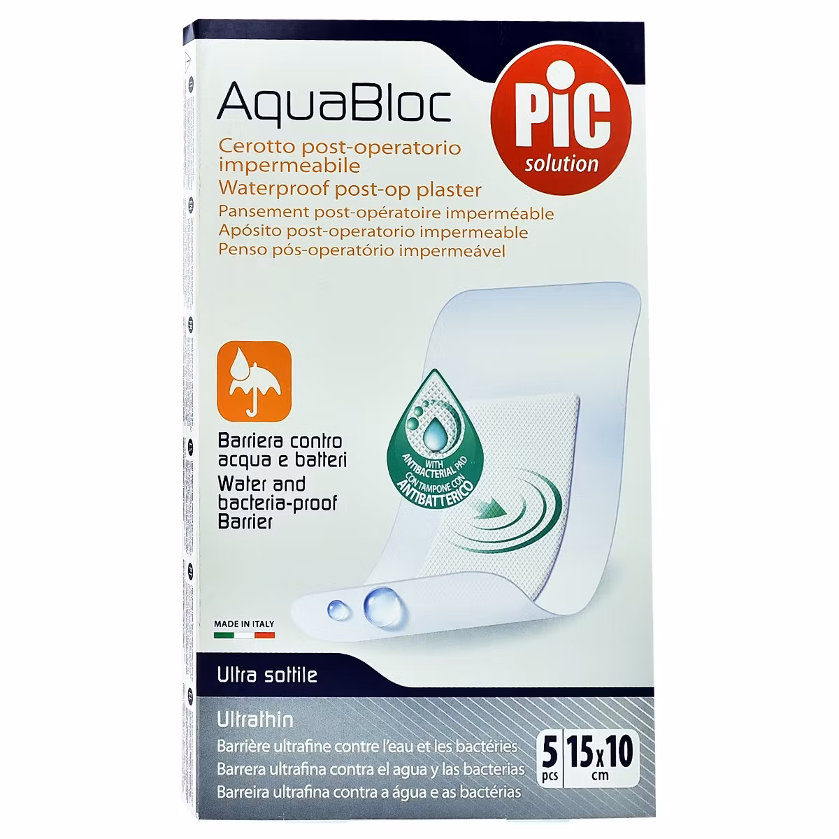 Pic Solution Aquabloc ngjitës i papërshkueshëm nga uji pas operacionit 25×10 cm. Është sterile dhe ju mbron plotësisht nga transmetimi i baktereve, pasi ka një garze që përmban një tretësirë anti-bakteriale me diglukonat klorheksidine.Është një substancë me një gamë të lartë veprimi antibakterial që lejon kontrollin e mikromjedisit të jastëkut, duke mbrojtur plagën nga rreziku i infeksionit