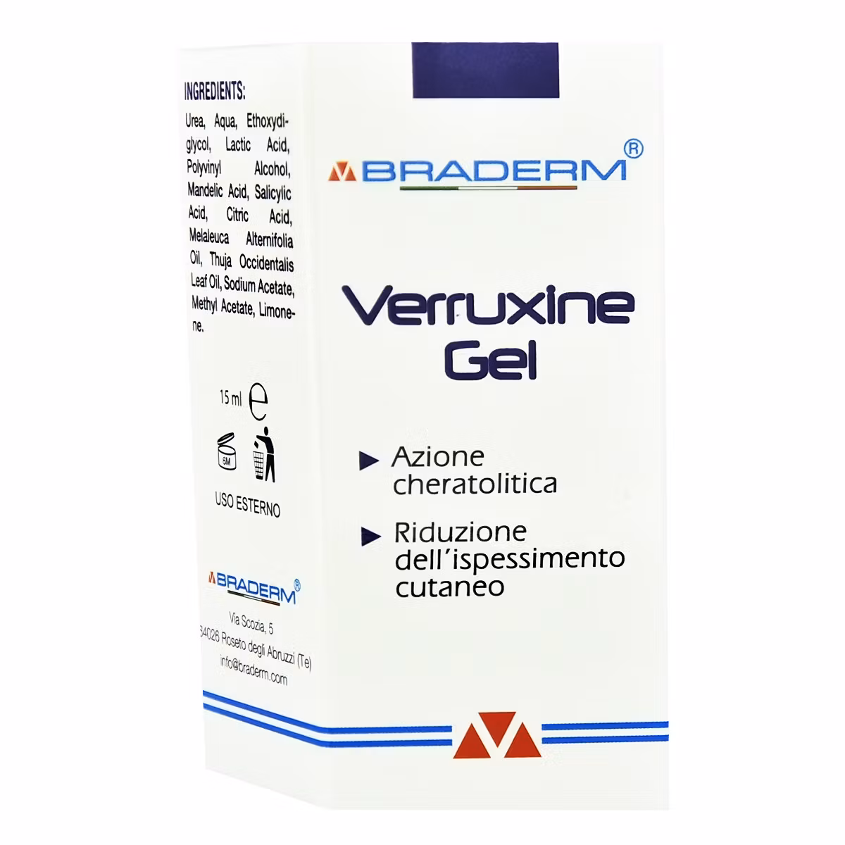 Braderm Verruxine është një zgjidhje topike e krijuar për trajtimin e lythave dhe kallo. Përmban acid salicilik dhe acid laktik, të cilat veprojnë duke zbutur dhe hequr gradualisht shtresat e lëkurës së fortë. Verruxine është i lehtë për t'u aplikuar dhe është efektiv në trajtimin e lythave të zakonshme, lythave plantare dhe kallove. Aplikimi i rregullt ndihmon në reduktimin e madhësisë dhe shqetësimit të lythave, duke promovuar një lëkurë më të shëndetshme. Është i përshtatshëm për përdorim në duar dhe këmbë, duke ofruar një zgjidhje të synuar për problemet e lëkurës.