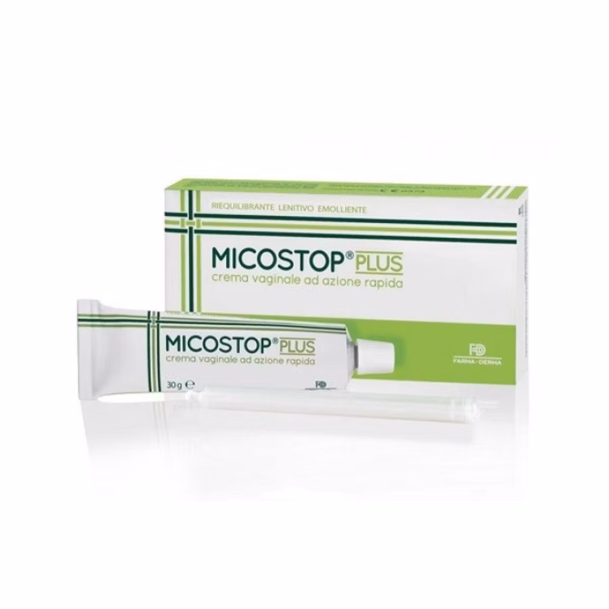 Kremi vaginal Micostop Plus indikohet si një trajtim ndihmës kundër mykozave vaginale. Ka një veprim ribalancues dhe normalizues të pH vaginal, i cili është i dobishëm kundër kolonizimit të patogjenëve. Përmban Acid Borik dhe Klorheksidinë që kane veprim antibakterial dhe antimykotik. Ndihmon në lehtësimin e simptomave si kruajtje, djegie, dhimbje dhe acarim.