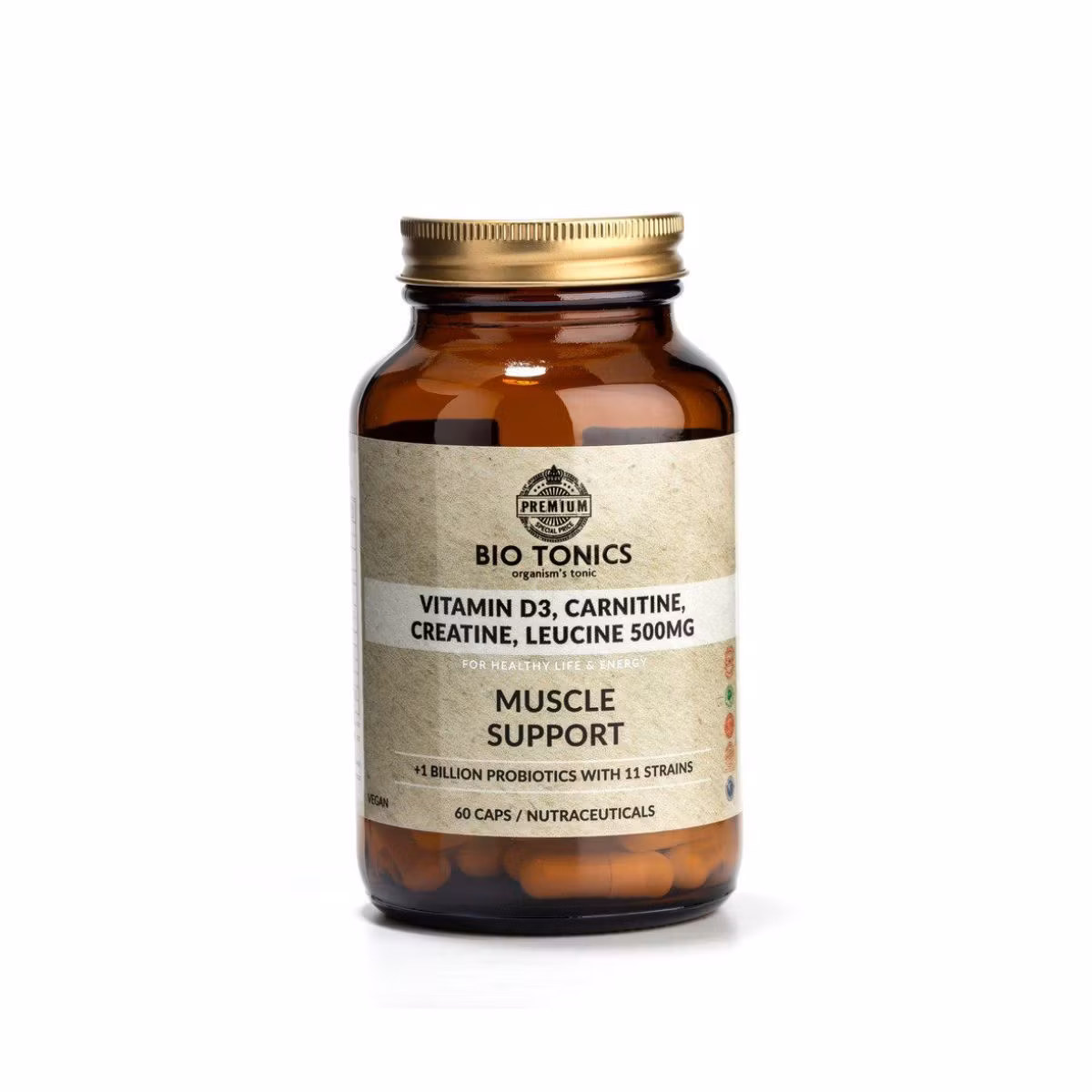 Bio Tonics Muscle Support është një suplement i formuluar posaçërisht për të mbështetur forcën dhe rikuperimin e muskujve. Përbërësit e tij natyralë ndihmojnë në rritjen e qëndrueshmërisë fizike, reduktimin e lodhjes dhe përmirësimin e performancës sportive. Ky suplement është ideal për atletët, personat që ushtrohen rregullisht dhe ata që duan të ruajnë masën muskulore në mënyrë natyrale. Merrni 1-2 kapsula në ditë.