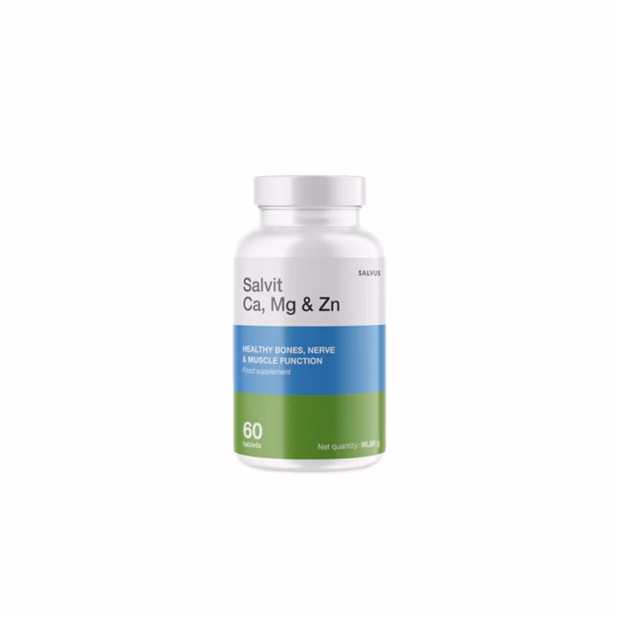 Salvit CA, MG & Zn Tabs 60 është një suplement ushqimor mineral i formuluar me një kombinim të tre mineraleve thelbësore – kalcium, magnez dhe zink – që punojnë së bashku për të mbështetur shëndetin e kockave, funksionin normal të muskujve dhe të sistemit nervor, si dhe mirë-funksionimin e trupit në nivel të përgjithshëm. Kalciumi është i domosdoshëm për mirëmbajtjen e kockave normale dhe funksionin e muskujve e të nervave, magnezi kontribuon në sintezën e proteinave, reduktimin e lodhjes dhe mbajtjen e shëndetit të muskujve e kockave, ndërsa zinku luan rol në ndarjen normale të qelizave, mbështet funksionin kognitiv dhe ndihmon në mirëmbajtjen e strukturës kockore dhe imunitetit. Suplementi rekomandohet që të rriturit të marrin 2 tableta në ditë me ushqim, duke siguruar marrje të përditshme të këtyre mineraleve për të mbajtur trupin me energji, fleksibilitet dhe forcë. Salvit CA, MG & Zn Tabs 60 është i përshtatshëm për atyre që duan të mbështesin shëndetin e kockave dhe muskujve, për individë me nevoja të shtuar minerale për shkak të aktivitetit fizik të rritur, dietës jo gjithmonë të balancuar apo dobësimit të strukturës kockore me moshën, si dhe për ata që duan përkrahje të sistemit nervor dhe metabolizmit të energjisë në një formulë të thjeshtë dhe efektive.