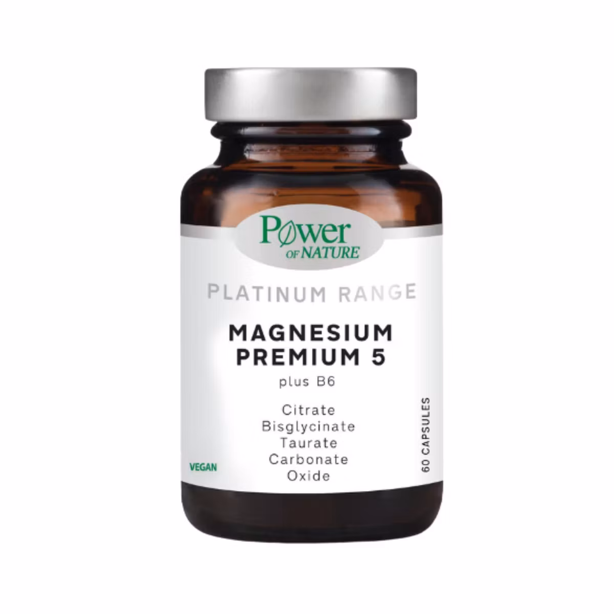 Power Of Health Magnesium Premium 5 Caps 30 është një suplement ushqimor me formulë të avancuar, që përmban 5 forma të magnezit, të zgjedhura për biodisponibilitet të lartë dhe përthithje efektive nga organizmi. Magnezi kontribuon në funksionimin normal të muskujve dhe sistemit nervor, ndihmon në reduktimin e lodhjes dhe rraskapitjes, si dhe mbështet ekuilibrin elektrolitik dhe metabolizmin normal të energjisë. I përshtatshëm për persona aktivë, gjatë periudhave të stresit, lodhjes fizike apo mendore. Ideale për përdorim ditor si pjesë e një stili jetese të shëndetshëm.