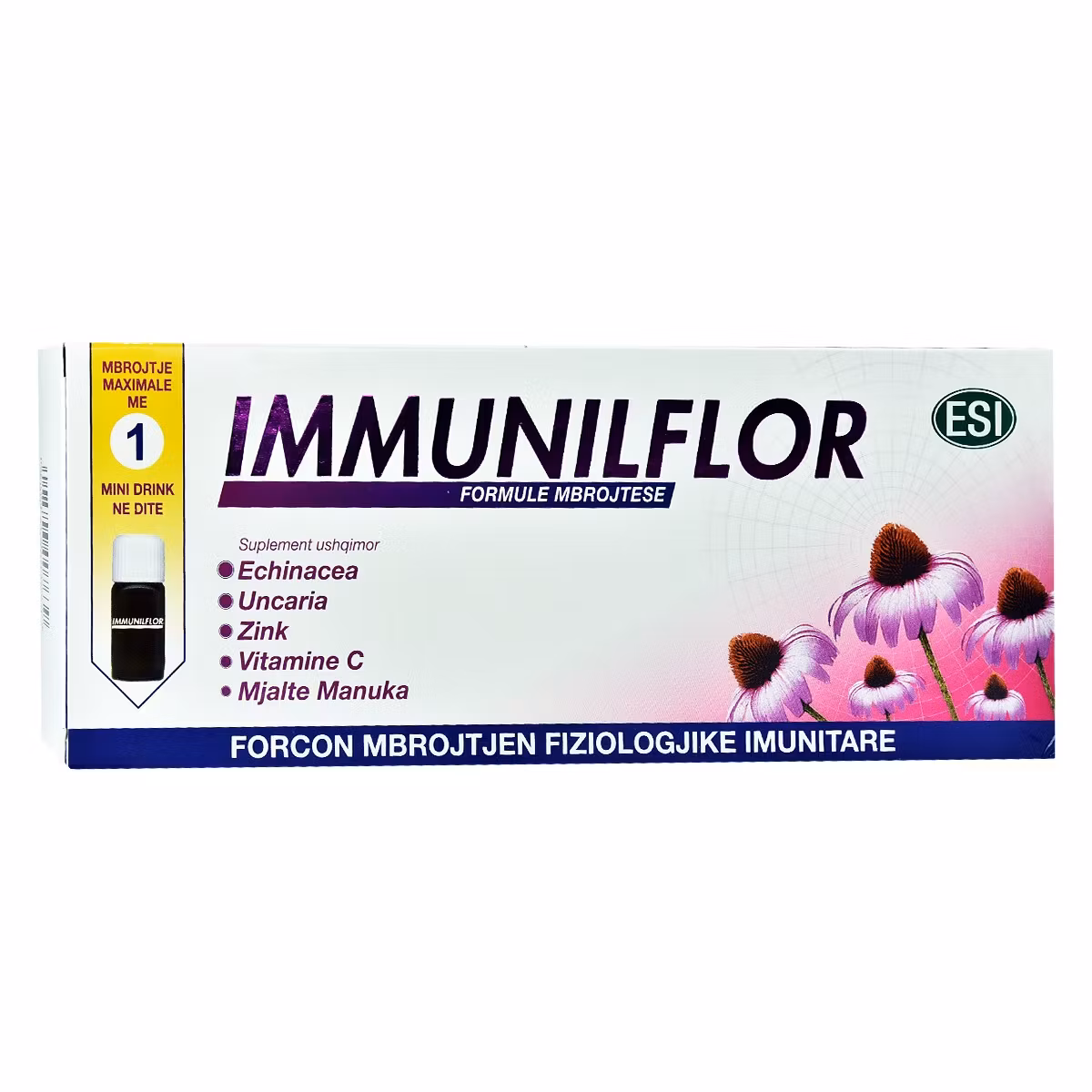 Immuniflor është një suplement ushqimor i përbërë me Echinaceae, Uncaria, Zink, Vitaminë C dhe Mjaltë Manuka. Echinaceae dhe Unacaria janë të nevojshme për mbrojtjen natyrale të organizmit. Vitamina C dhe Zinku kontribuojnë në funksionimin e sistemit imunitar dhe mbron qelizat nga stresi oksidativ. Përmban 2 miliardë enzima fermente.