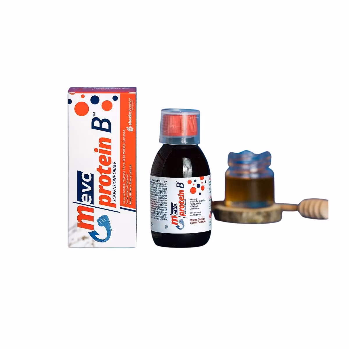 Mevoprotein është suplement ushqimor me bazë Karnitinë, vitamina, hekur, mjaltë Millefiori, dhe qumësht blete. Përmban hekur, vitaminë C, Niacinë, Acidit pantotenik, vitaminës B6, Riboflavinë, Tiaminë, Biotinë dhe vitaminë B12. Kontribuon në metabolizmin normal të energjisë. Hekuri, Acidit Folik dhe Vitaminës B12 ndihmon në reduktimin e lodhjes. Ndihmon në funksionimin normal të procesit të formimit të gjakut. Vitamina C dhe mjalti kontribuojnë në mbrojtjen e qelizave nga stresi oksidativ.