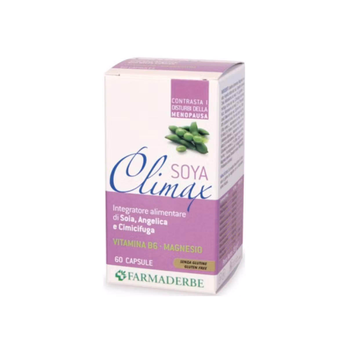 Farmaderbe Climax Soya është suplement që siguron sasinë më të lartë të fitoestrogjeneve të sojës për të luftuar simptomat tipike të menopauzës. Ndihmon në funksionimin normal psikologjik. Kontribuon në ruajtjen e shëndetshme të sistemit nervor. Ndihmon në ruajtjen e densitetit të kockave dhe remineralizimit të indeve. Promovon aktivitet të rregullt të sistemit kardiovaskular dhe mikroqarkullimit.