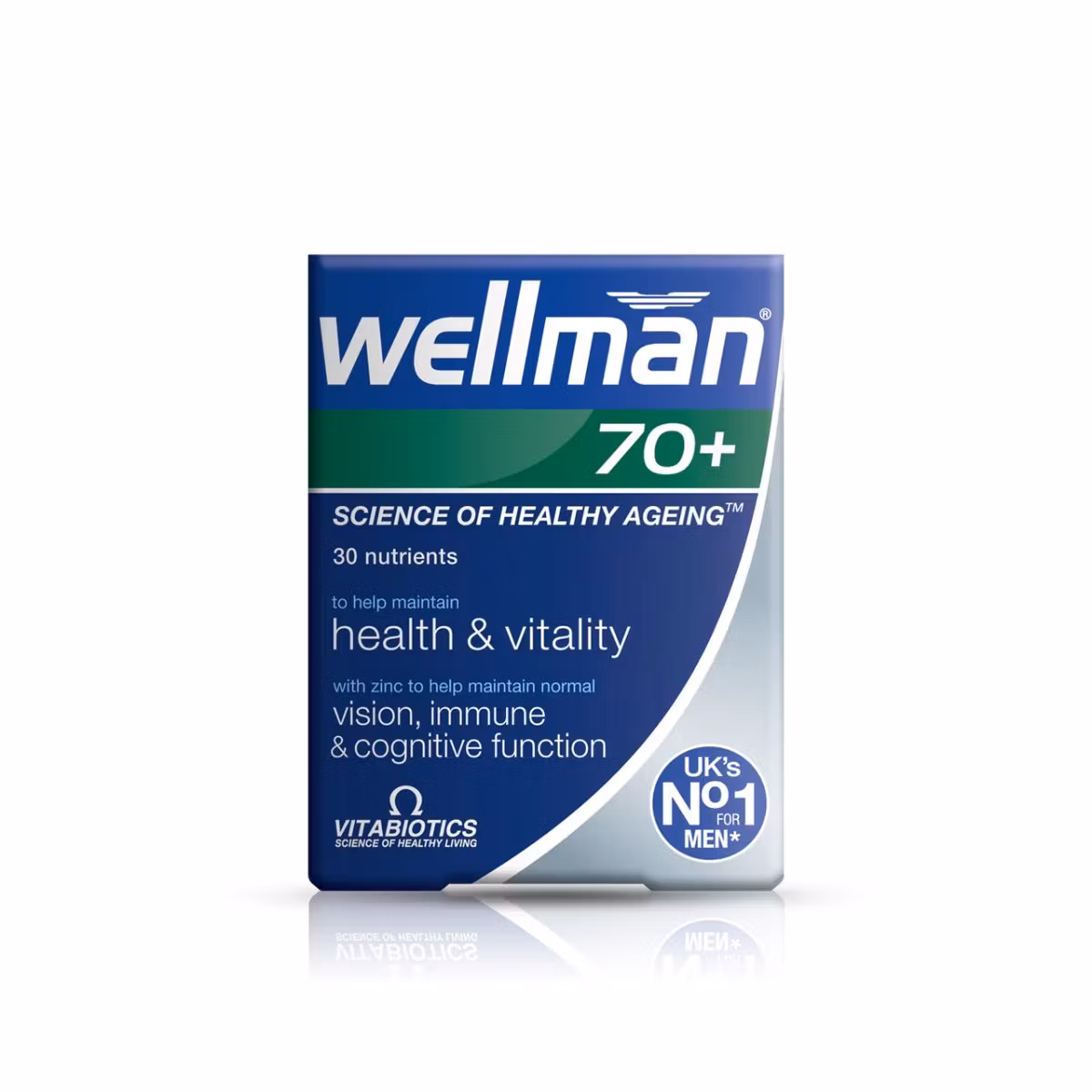 Një suplement i formuluar për meshkujt 70 vjeç e lart, për përmirësimin e shëndetit të zemrës, trurit, energjisë, shikimin, imunitetin dhe shëndetin e përgjithshëm. Një kombinim prej 30 vitaminash dhe lëndësh ushqyese të avancuara. Wellman 70+ përmban Tiaminë (vitaminë B1), Bakër, Hekur, Vitaminat B6, B12 të cilat kontribuojnë në formimin normal të qelizave të kuqe të gjakut. Formula përmban Xhensen siberian, ekstrakt të farës së Kungullit, Acidin Alfa Lipoik dhe Co-Q10.