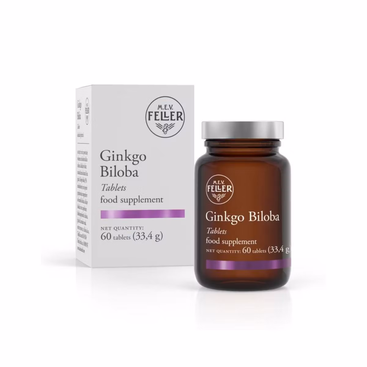 Suplementi ushqimor M.E.V. Feller Ginkgo Biloba përmban ekstraktin e gjetheve të Ginkgos të pasur me përbërës biologjikisht aktiv Glikozide Flavonoide, Laktone Triterpene dhe Proçididine. Ekstrakti i gjetheve të ginkgos kontribuon në qarkullimin normal, funksionet normale konjitive dhe mundësojnë nivelin më të lartë të funksionimit intelektual.