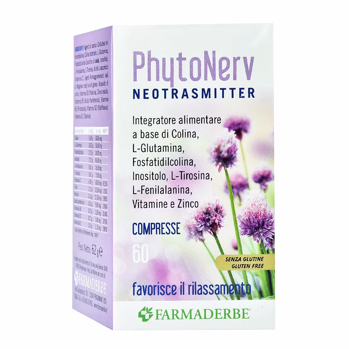 PhytoNerv Neotrasmitter është një suplement ushqimor që kontribuon në funksionimin normal të sistemit nervor.Është i pasur me Kolinë, L-glutaminë, L-Tirozinë dhe Oksid Zinku që janë të domosdoshëm për funksionin e neuroneve që kontrollojnë muskujt. Ky suplement ndihmon në gjendjen e mirë intelektuale dhe emocionale.