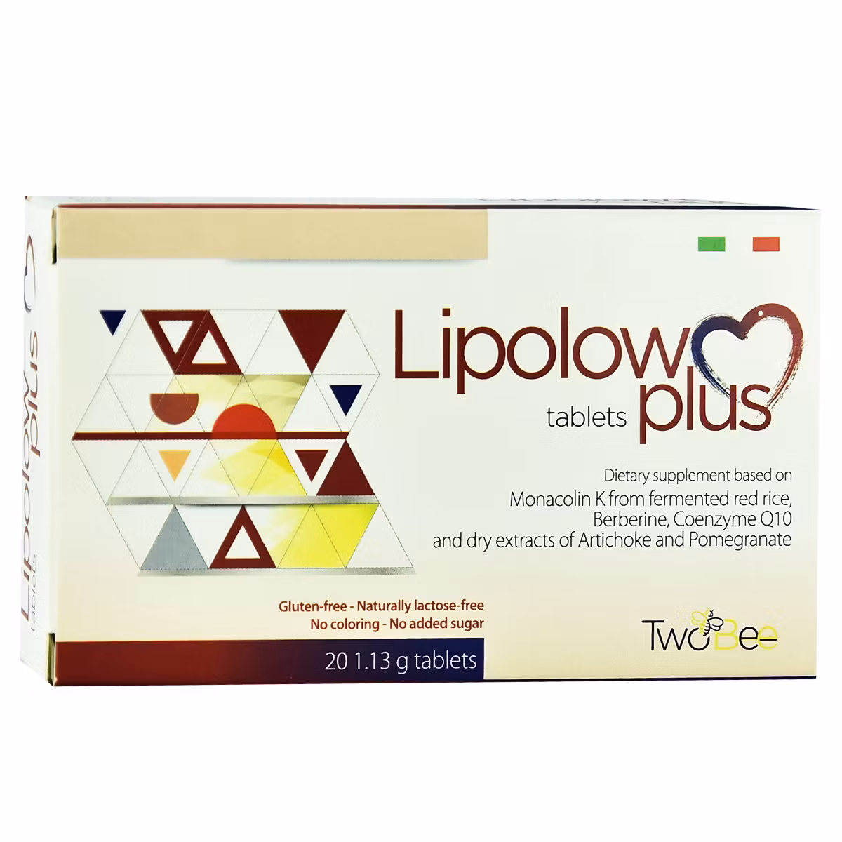 Lipolow Plus një suplement ushqimor i cili përmban Monacolin K nga orizi i kuq, Berberine, Coenzyme Q10, ekstrakt shege dhe argjinare përdoret për të kontrolluar nivelet e kolesterolit. Monakolina K kontribuon në mirëmbajtjen e niveleve normale të kolesterolit në gjak. Ky efekt arrihet duke marrë një sasi ditore deri në 10 mg të preparateve që përmbajnë Monacolin K (ekuivalente me një tabletë Lipoloë Plus). Rekomandohet për parandalim primar të dislipidemisë në pacientët me nivele të ngritura të kolesterolit.