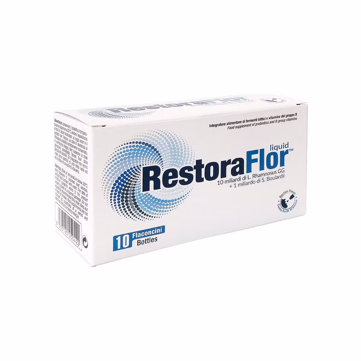 Restora Flor është një suplement ushqimor me probiotikë, vitamina dhe fibra prebiotike. Favorizon ekuilibrin fiziologjik të florës bakteriale të zorrëve në rast ndryshimesh për shkak të terapisë me antibiotikë, çrregullimeve intestinale ose të ushqimit, stresit, udhëtimeve dhe ndryshimit të klimës. Gjithashtu përmban vitamina të grupit B, të cilat ndihmojnë në reduktimin e lodhjes dhe në mirëfunksionimin e sistemit imunitar.