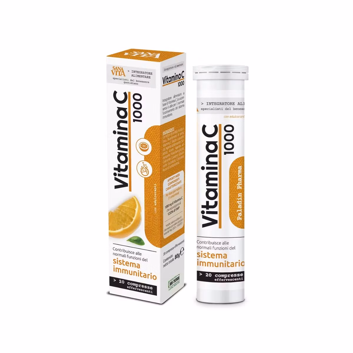 Sanavita Vitaminë C 1000 mg ndihmon në mirë funksionimin e sistemit imunitar. Vitamina C përdoret për të parandaluar ose trajtuar nivelin e ulët të saj në individët që nuk marrin mjaftueshëm vlera të vitaminës nga ushqimet. Ndihmon në menaxhimin e riskut të tensionit të lartë, sëmundjeve kronike dhe parandalon mungesën e hekurit. Sanavita Vitamina C është i formuluar në tableta eferveshente që kanë shije portokalli.