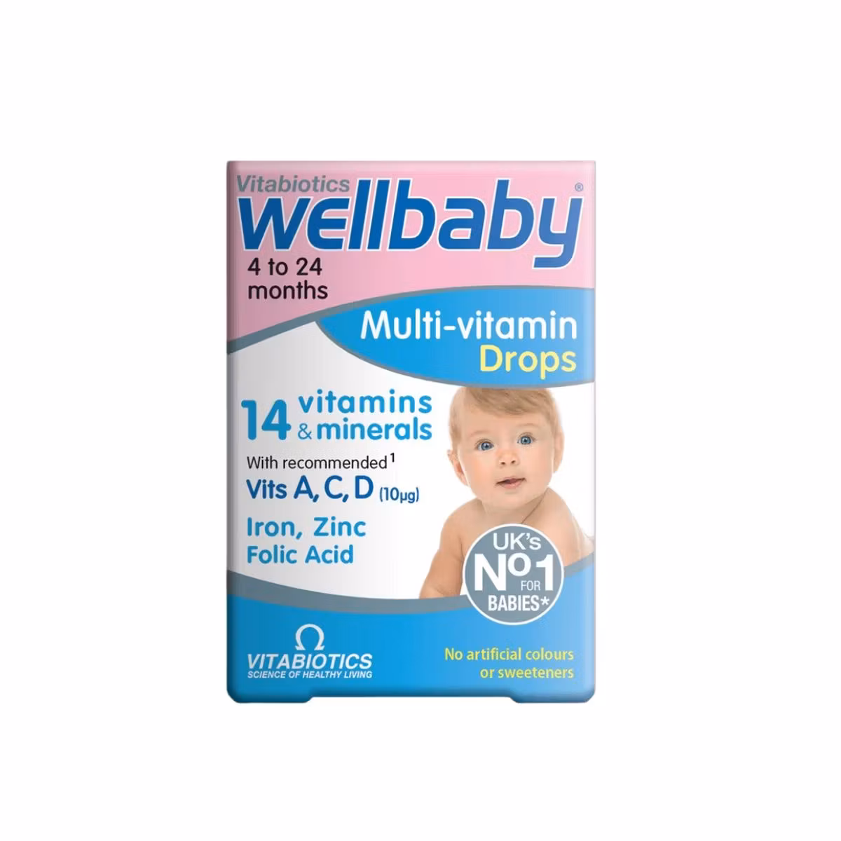 Wellbaby Drops është një formulim i lëngshëm, kombinim i 14 lëndëve ushqyese të formuluara për nevojat e fëmijës tuaj. Përmban Vitaminë D e cila është e nevojshme për rritjen normale dhe zhvillimin e kockave. Hekuri kontribuon në formimin e rruazave të kuqe dhe formimin e hemoglobinës. Vitaminat B6, B12, Zinku dhe ekstrakti i Maltit ndihmojnë në mirë funksionimin e sistemit njohës.