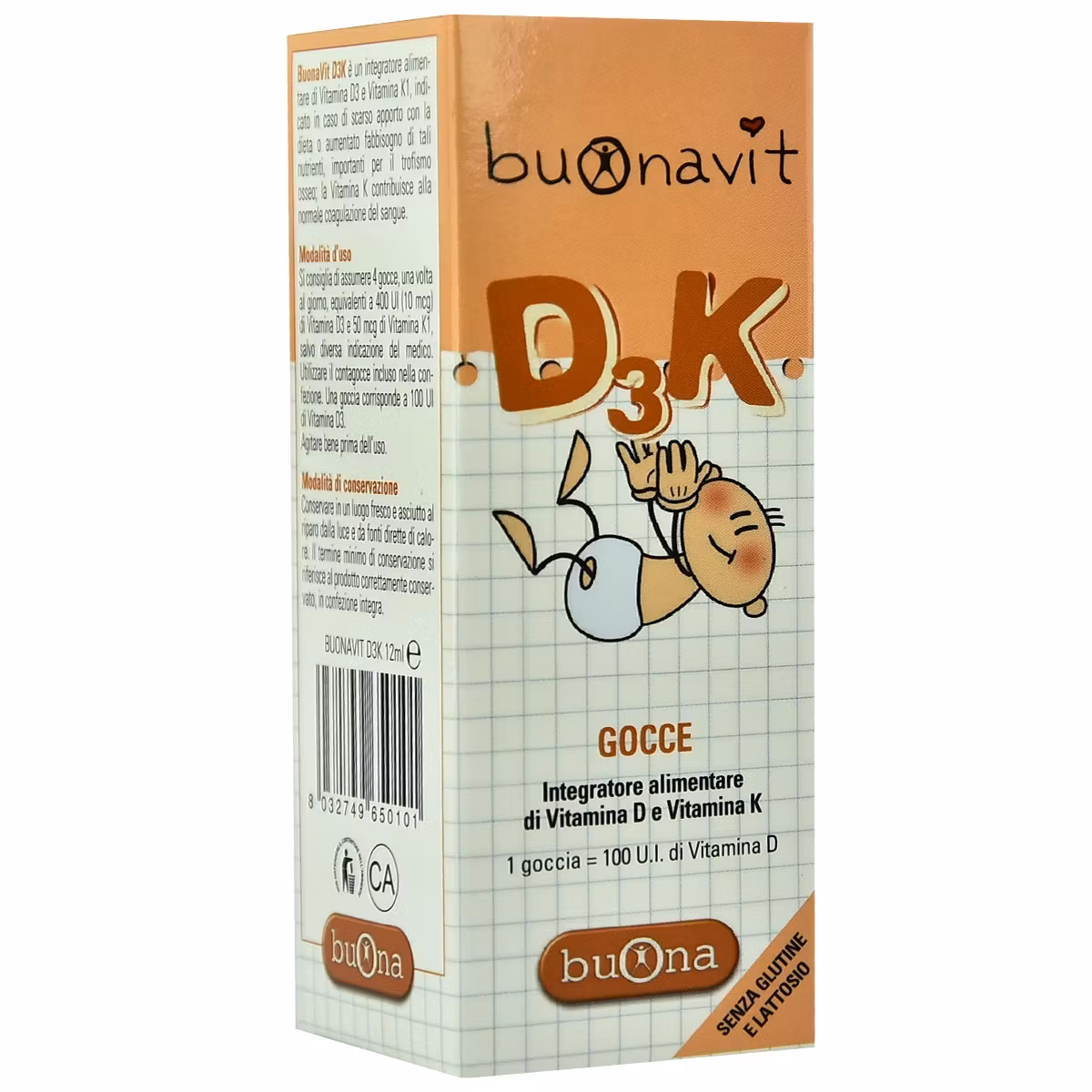Buonavit D3K është një suplement ushqimor në formë pikash për fëmijët në vitet e para të jetës. Vitamina D3 përdoret në rritjen normale të kockave dhe ndihmon në funksionimin normal të sistemit imunitar të fëmijëve. Vitamina K kontribuon në koagulimin normal të gjakut.
