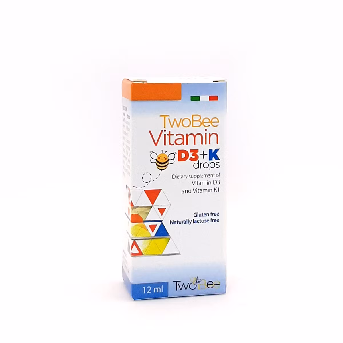 Two Bee Vitamin D3+K Drops është një suplement ushqimor në formë pikash i cili rekomandohet të përdoret në raste mungese nga vetë organizmi. Vitamina D3 përdoret në rritjen normale të kockave dhe ndihmon në funksionimin normal të sistemit imunitar të fëmijëve. Vitamina K kontribuon në koagulimin normal të gjakut.