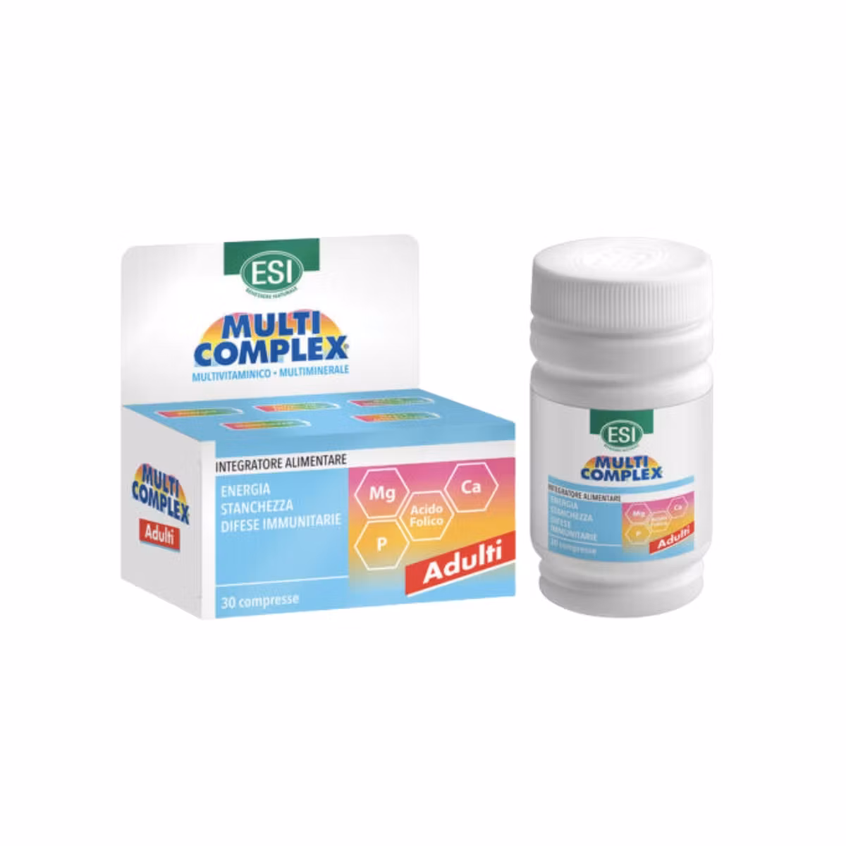 Esi Multicomplex Adulti Multicomplex është një formulë e krijuar për të përmbushur nevojat e të rriturve për vitamina dhe minerale. Ndihmon në gjendjet e lodhjes mendore dhe fizike. Stimulon kujtesën dhe përqendrimin dhe përmirëson performancën atletike. Vitamina A ndihmon në ruajtjen e funksionit të duhur vizual. Vitaminat e grupit B janë të përfshira në proceset kryesore metabolike të energjisë. Vitamina PP redukton ndjenjën e lodhjes. Vitamina E vepron si një antioksidant. Magnezi ndihmon në mirëmbajtjen e kockave dhe dhëmbëve dhe i jep energji të re organizmit. Zinku dhe Seleni mbështesin sistemin imunitar duke reduktuar stresin oksidativ në qeliza.